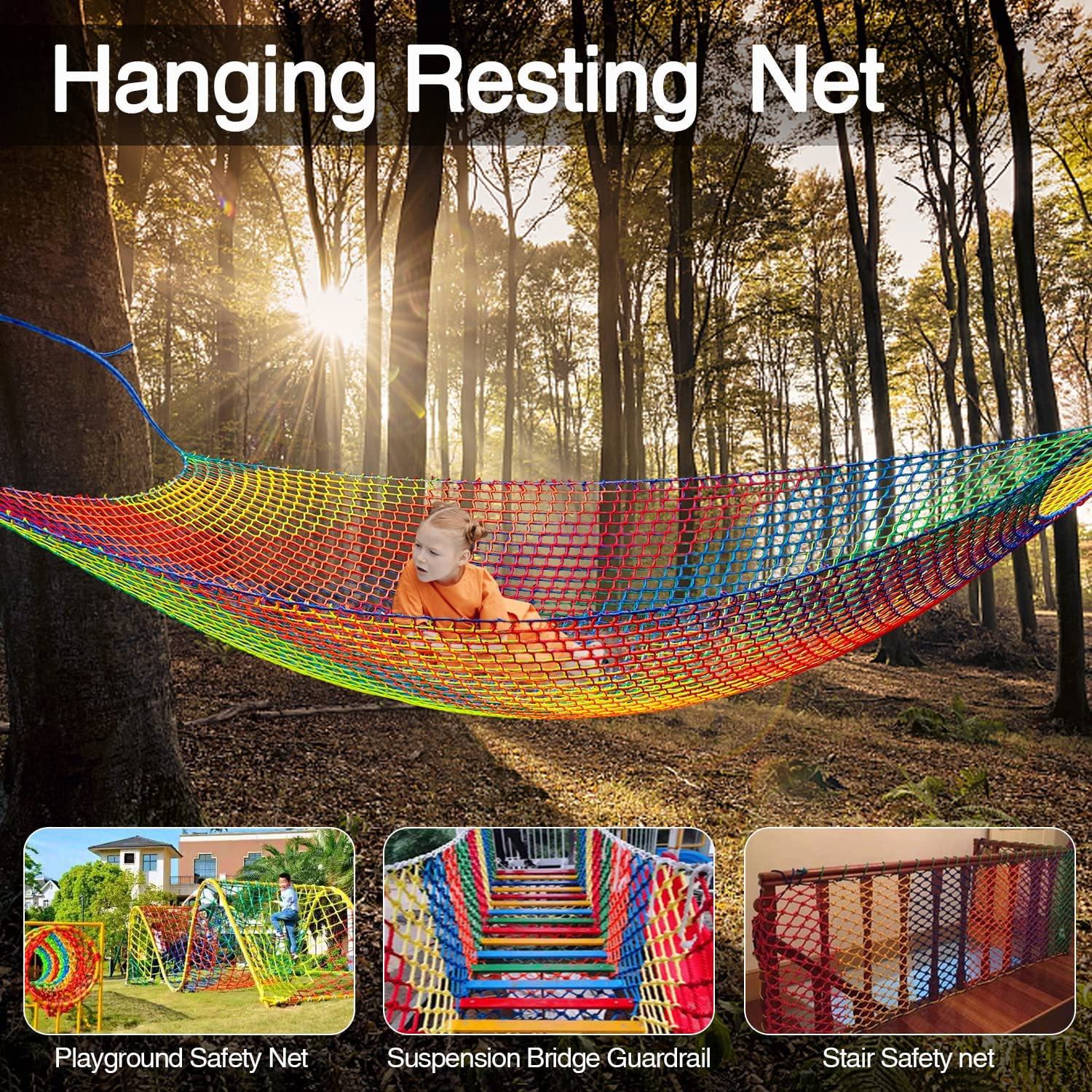14.5' X 9.8' Kids Playground Play Safety Net - Polyester Climbing Cargo Net with