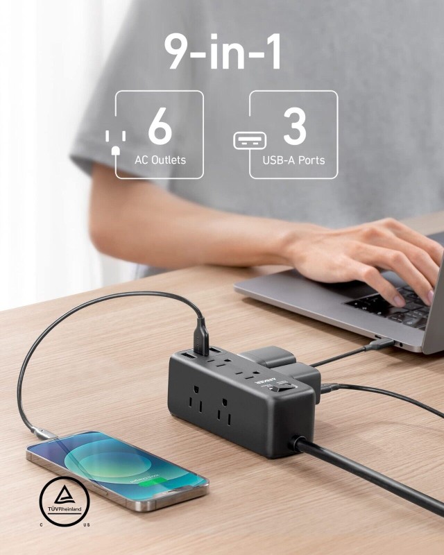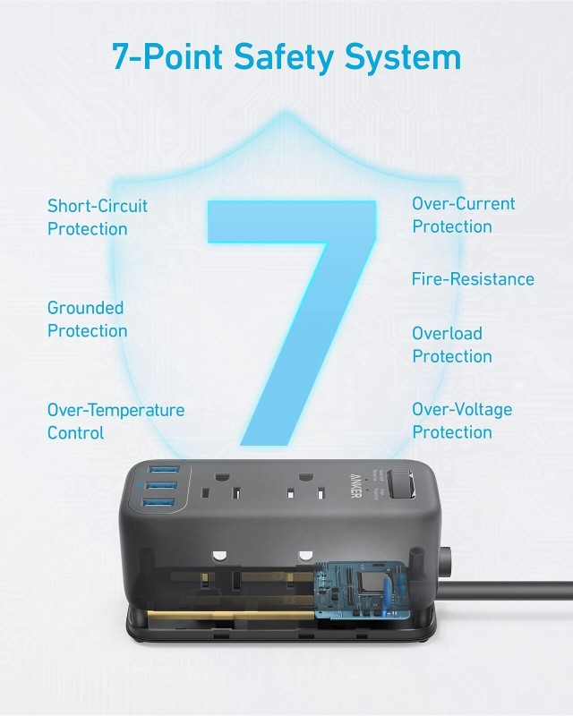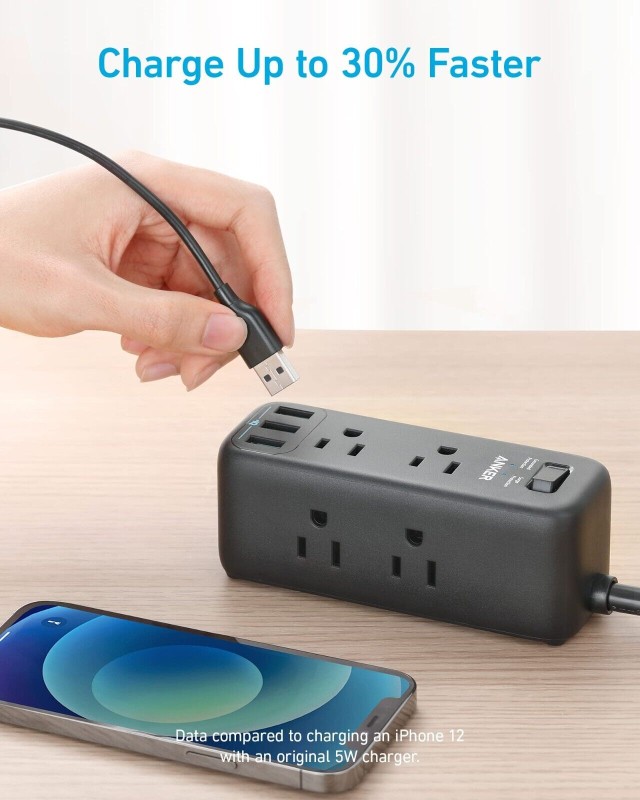 Anker 6 Power Strip Surge Protector w/ 3 USB 5ft Extension Cord for Travel Home