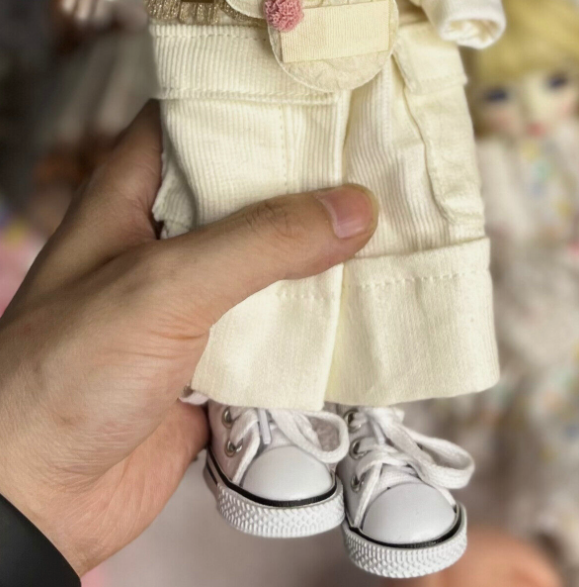 The doll's makeup, wigs, clothes and shoes are hand-made.