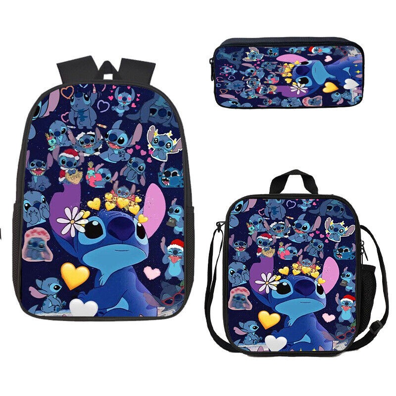 Boys Girls School Bag Stitch Backpack Kids Travel Lunch Bag Pencil Case Set Gift