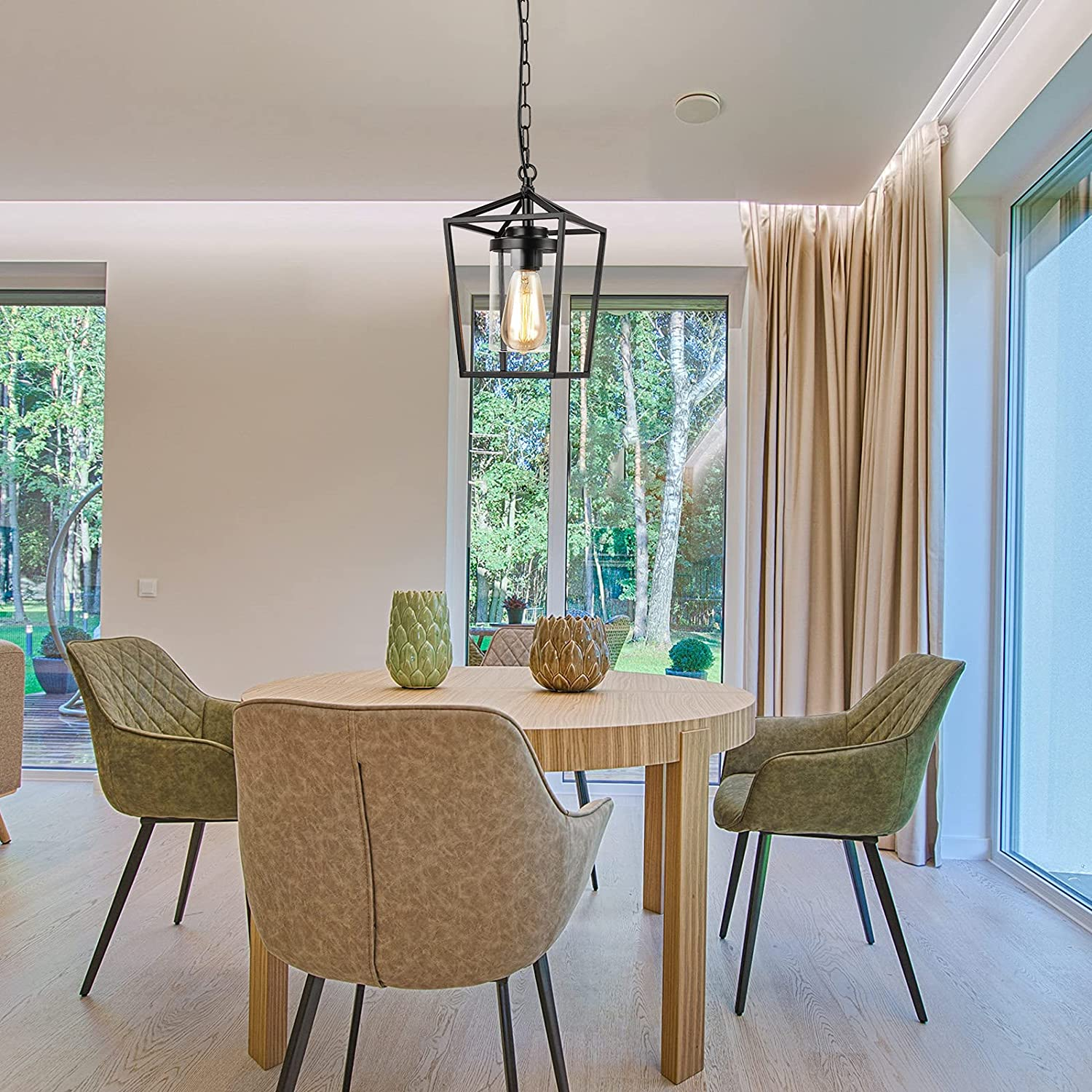 Farmhouse Pendant Lights Kitchen Island, Indoor Outdoor Hanging Chandelier, Blac