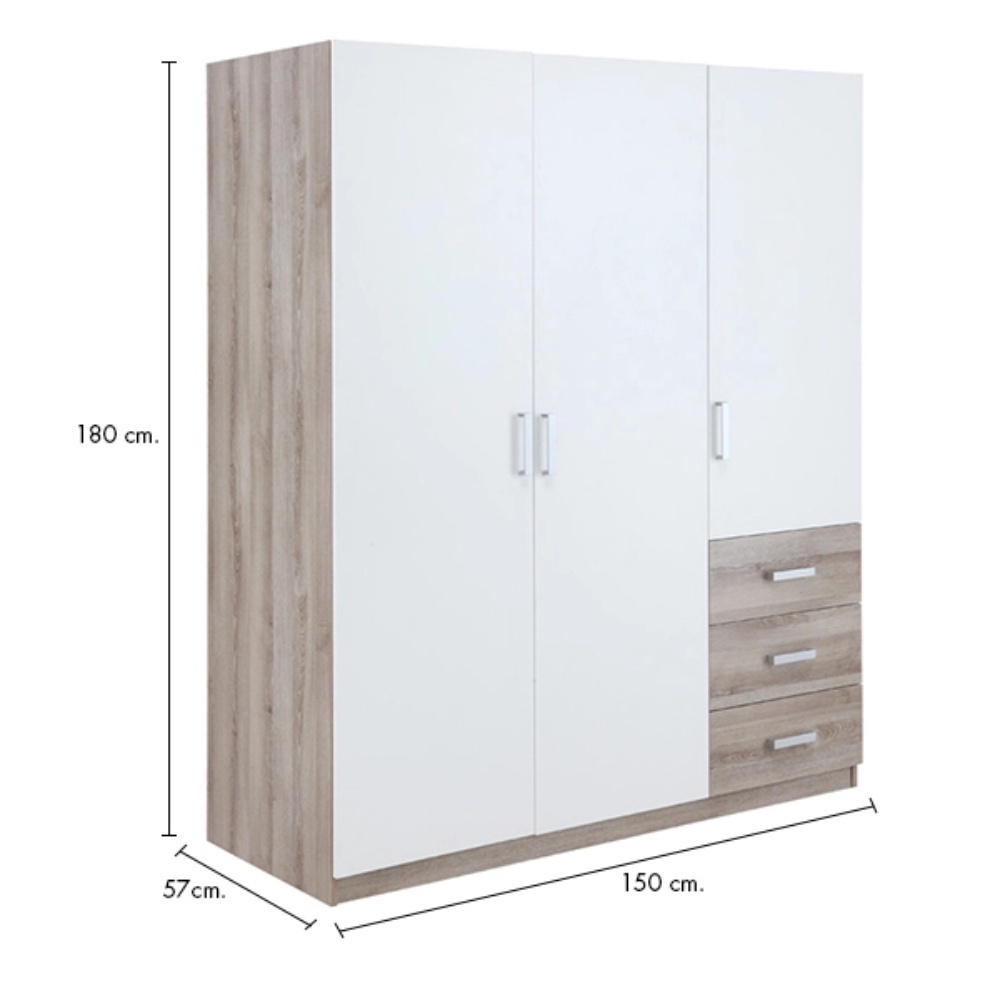 INDEX LIVING MALL ตู้เสื้อผ้า 3 บานประตู รุ่นวินซ์ ขนาด 150 ซม. - สีธรรมชาติ/ขาว