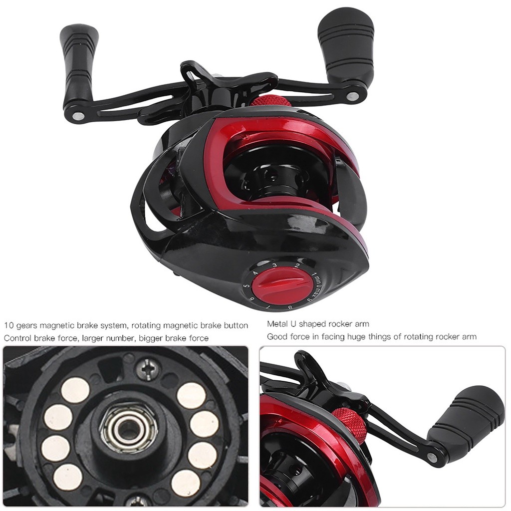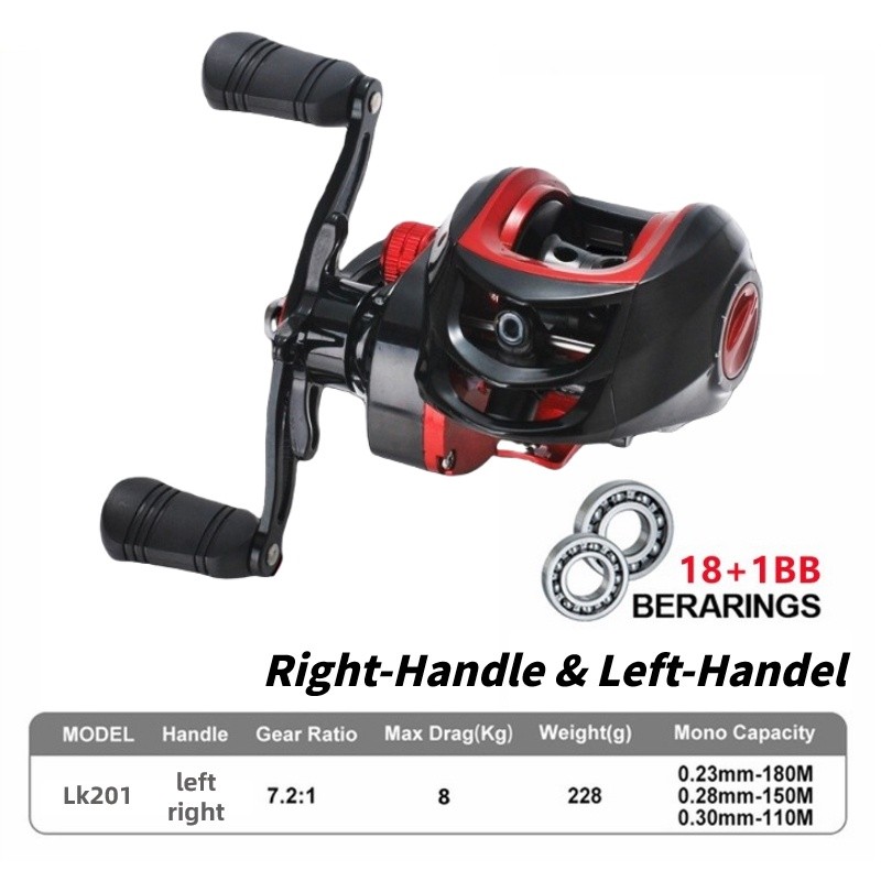รอกตกปลา LK201 พลาสติก/อลูมิเนียมอัลลอย สีดำ สีแดง เบรกแม่เหล็กมาตรฐาน สำหรับมิอขวา/ซ้าย SB6115