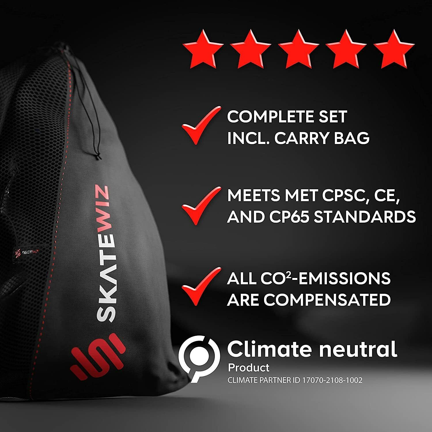 SKATEWIZ Skateboard Pads Knee & Elbow Pads & Wrist Guards for Roller Skating
