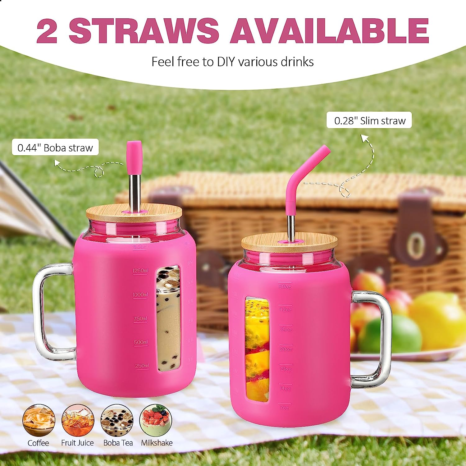 Tumbler with Lid and Straw 50 Oz Mug Tumbler with Handle Giant Glass ...