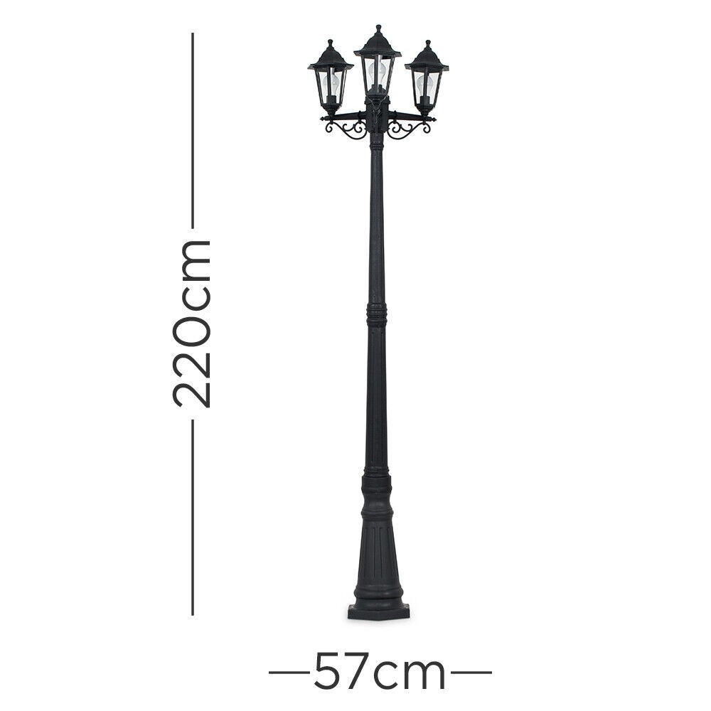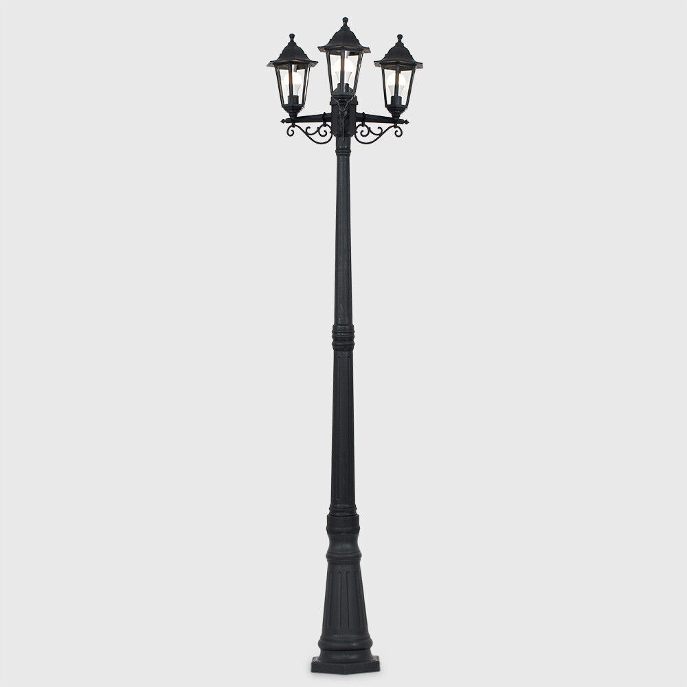 Victorian 220cm Black 3 Way Lantern Outdoor Garden Lamp Post LED Lighting IP44