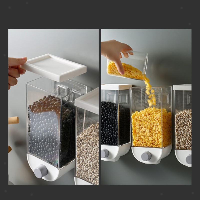 Wall-Mounted Food Dispenser Food Storage Container Kitchen Storage Box for Rice